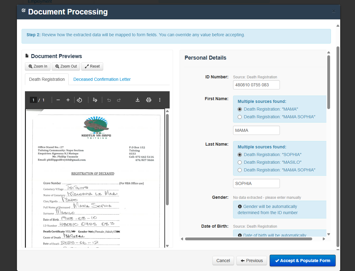 When you are happy with the populated fields click on "Accept and Populate Form button"
