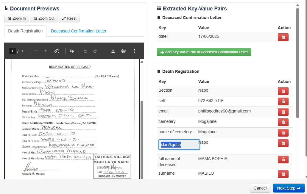 Edit the righthand side of the form as best as possible and ensure the correct information is captured. You may edit the Key as well as the Value by simply clicking on each item's key and value they will save automatically. If there are any key/values which you do not wish to keep you can simply delete it.