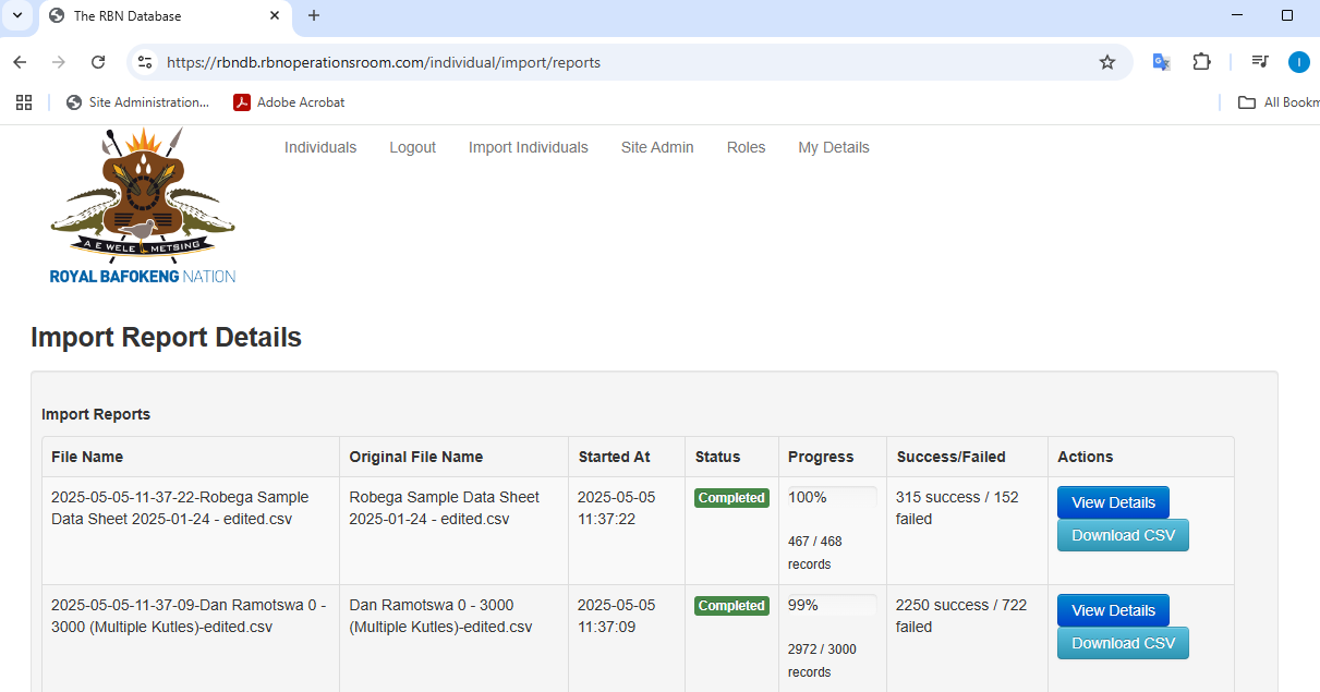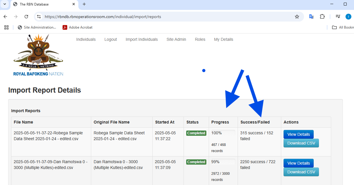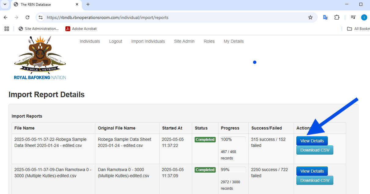 You can view the details of each record whether it was successful or failed by clicking on the View Details button